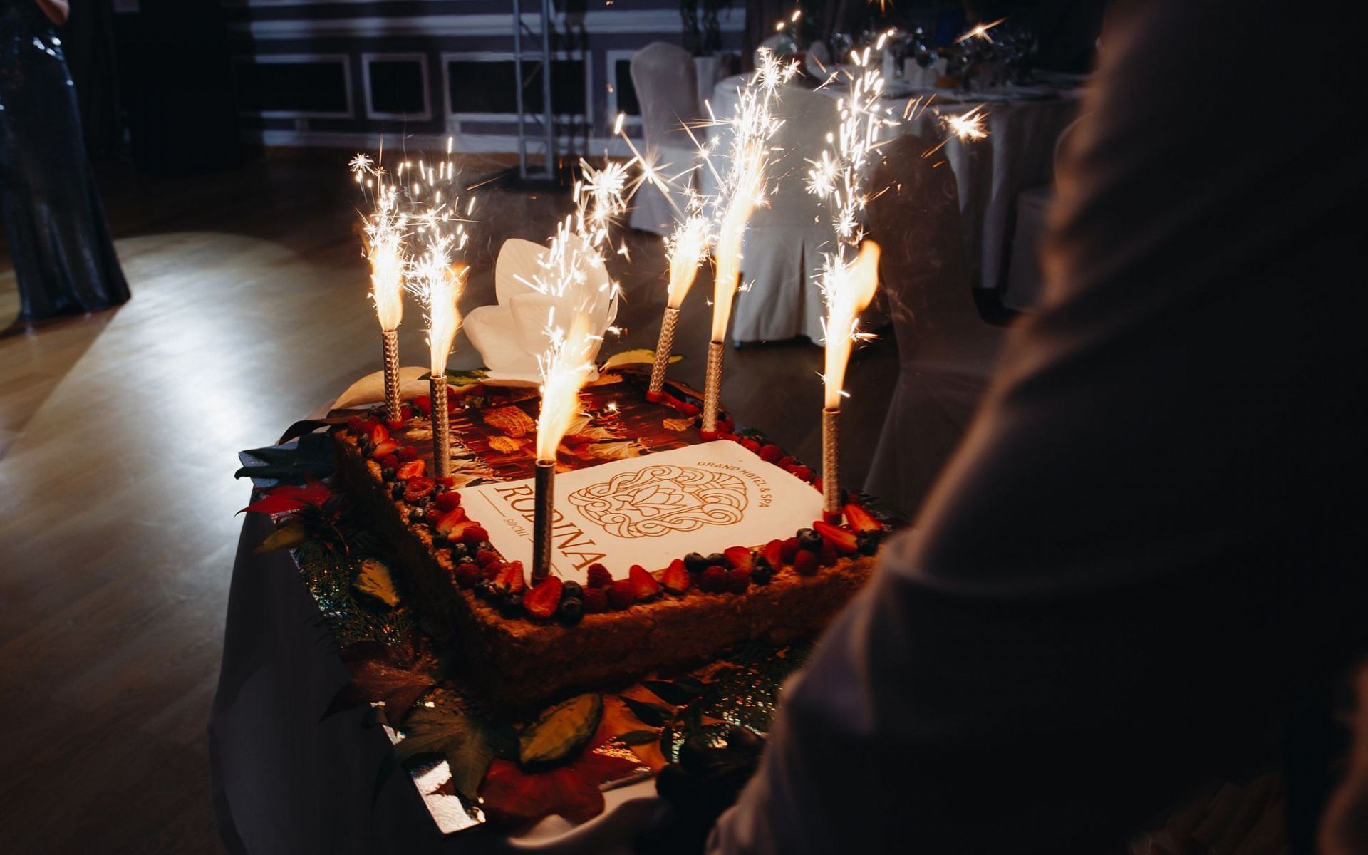 В завершении вечера гостей ждал фирменный торт кондитерской мастерской RODINA Bakery, а также праздничный салют.