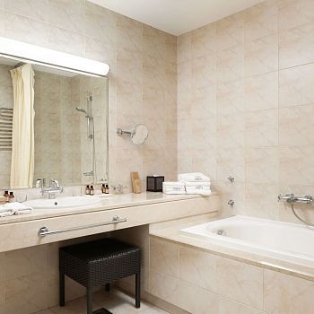 Этот просторный и комфортабельный номер выполнен в классическом стиле. Интерьер в сдержанной гамме элегантно обращает ваше внимание к живописному виду на парк. Дизайнерская платформа разделяет пространство на спальную и гостиную. Большая панорамная терраса приглашает насладиться солнечными ваннами или созерцанием звездного неба.